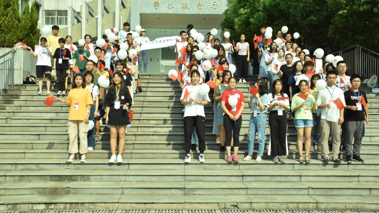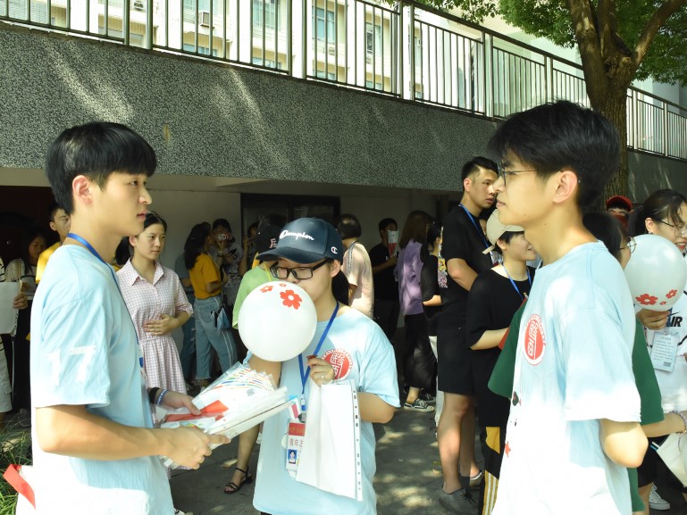 9月7日下午15点,金沙官网团委青年志愿者工作部组织志愿者于学术报告厅前开展“为唐鼓掌,为爱发声”志愿者活动。