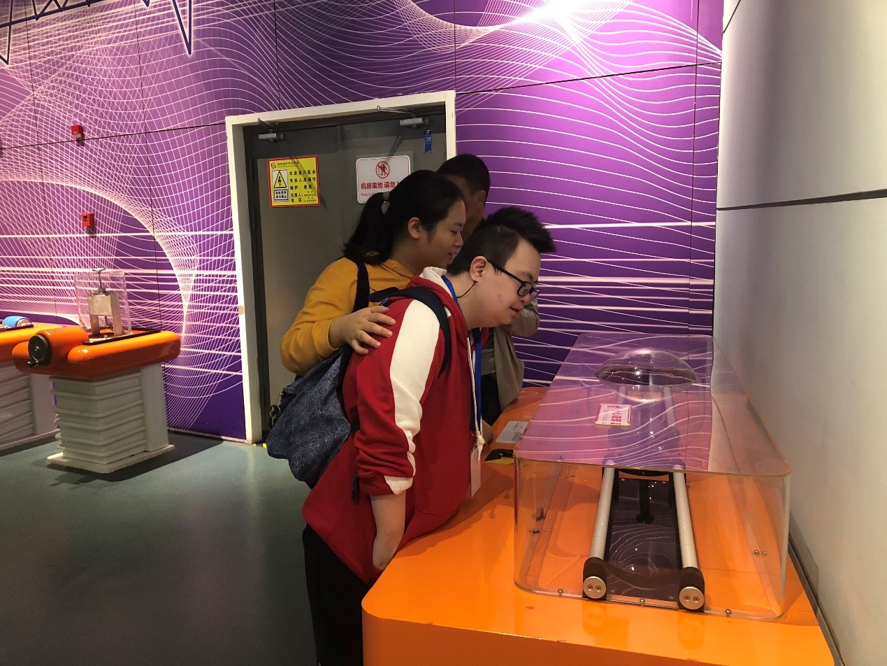 在徐桦、梁夕两人与志愿者会合后,志愿者带领他们进入湖南省科学技术馆内参观。因二人兴趣相异,志愿活动分为两组进行。