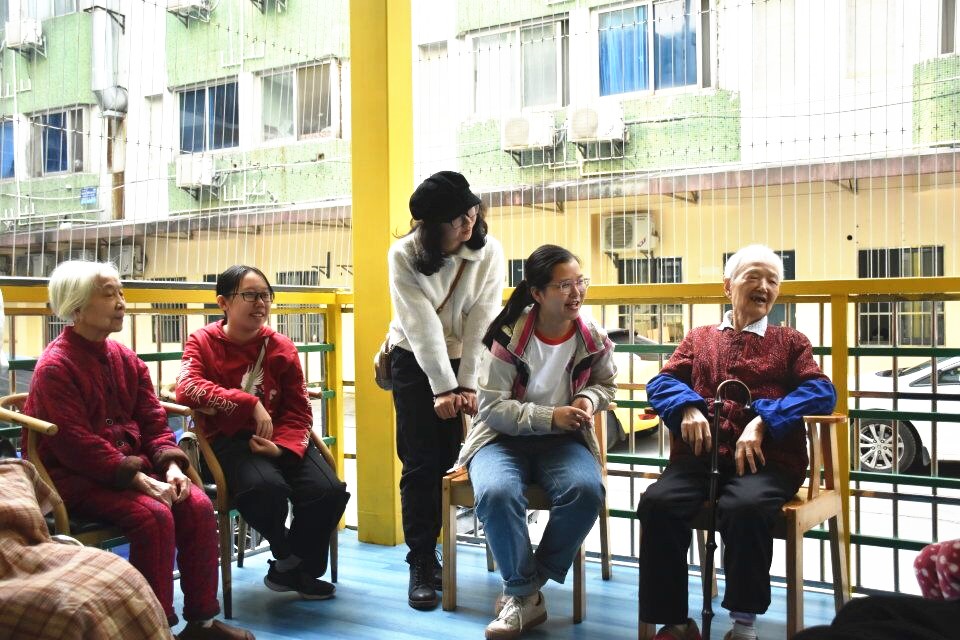 节目表演结束后,志愿者们分组协助护工将老人们送回房间,并与主动与老人交谈起来,聆听他们的故事,分享自己的趣事。一些精神状态较好的老人们聚在一起,和志愿者们合唱经典老歌:《学习雷锋》脍炙人口、《南屏晚钟》优雅动人。一时间养老中心充满欢声笑语。