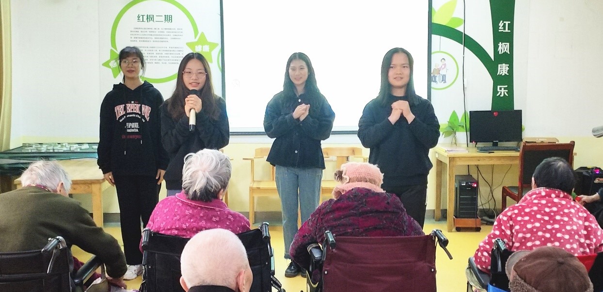 2019年11月10日上午9点,由金沙官网团委青年志愿者工作部主办的“心系夕阳,爱满红枫”志愿者活动于长沙市岳麓区红枫康乐医养中心开展。此次活动共征集了23名志愿者参与。