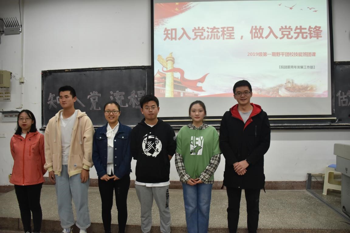 2019年11月15日19点,金沙官网团委青年发展工作部于勤医楼7教室开展野平团校2019级第一期技能班“知入党流程,做入党先锋”团课,此次团课由伍湘豫主持,党办学生助理兰鸿翔和黄纪飚主讲,金沙官网各系统的部分同学参与。