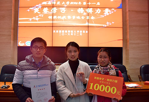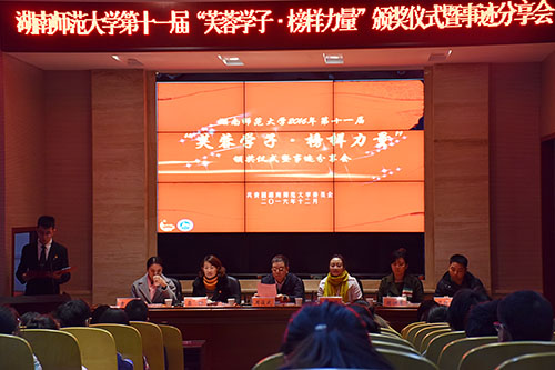 2016年12月29日下午三点,在教育科学学院101报告厅举行了js555888金沙老品牌第十一届“芙蓉学子•榜样力量”颁奖仪式暨事迹分享会。副校长周俊武,团委书记龚舒等领导出席了此次活动。