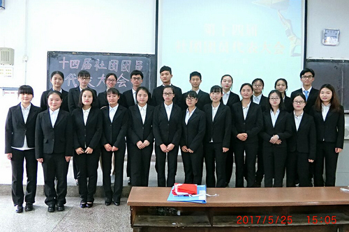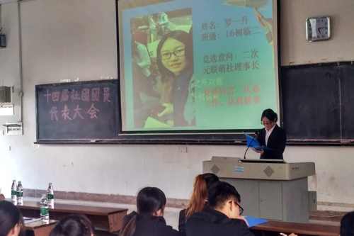 会议在社团联合会的联歌《青春舞台》的播放中开始,主持人宣布会议流程以及投票规则。每个观众对于每个职务都有一票的投票权,可以投给竞选这个职务的候选人中的一个,最终得票最高的候选人获胜。随后,候选人上台发表自己的演讲,其中一些候选人还穿插了自己的才艺表演,包括歌唱、笑话和舞蹈三种形式,赢得了在场观众的掌声。在演讲结束后,主持人重申了投票规则,让现场观众进行投票。经过统计后,主持人在现场宣布了最终名单,并且由上一任社团理事长给新任理事长授予社旗,社团换届活动正式结束。