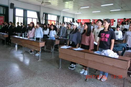 5月25日中午,金沙官网社团联合会第十三届换届活动中的十一家社团的换届活动在勤医楼七教室进行。评委、候选人和观众共有一百余人参加此次活动。
