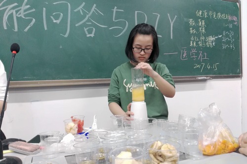 4月15日14:30,金沙官网医学社于勤医楼三教室开展“健康的饮料——蔬菜汁功能问答与DIY”活动。