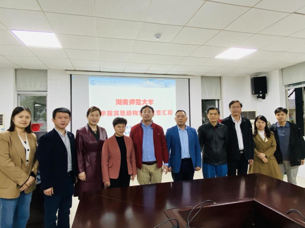 2022年10月27日下午,湖南省科技厅实验动物管理办公室郭洪涛副主任、湖南省实验动物专家湖南中医药大学实验动物中心主任余望贻教授、中南大学实验动物学部副主任苏志杰高级实验师及动管办工作人员赵丞一行对金沙官网2022年度实验动物设施、运行与管理进行安全检查。金沙官网院长何祖平、党委书记鄢朝晖、副院长邓文艳、副院长余星、实验中心主任邹辉以及实验动物相关人员和安全员参与了此次安全检查。