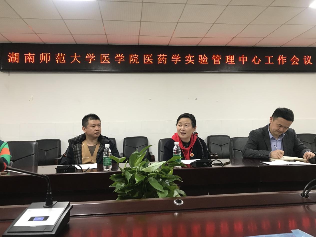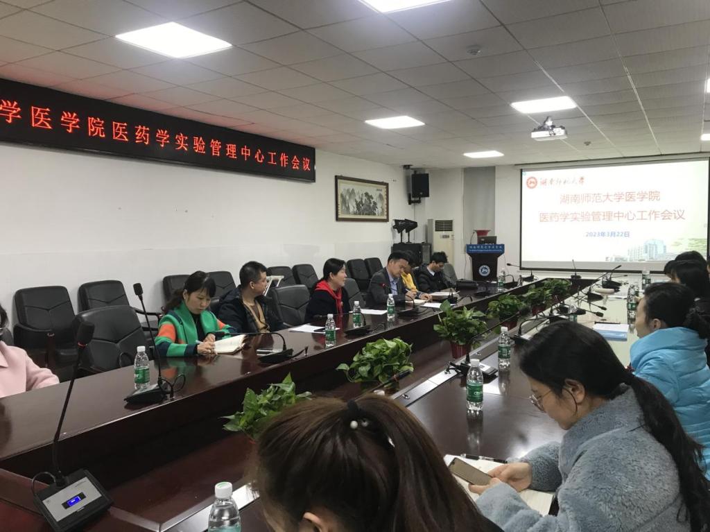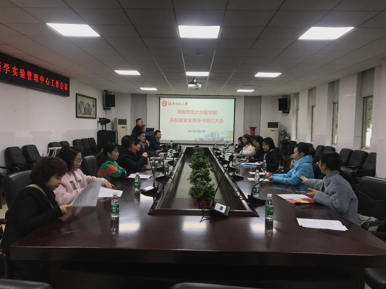 2023年3月22日中午,金沙官网医药学实验管理中心组织召开了本年度新学期中心工作暨安全责任书签订大会。会议由实验中心主任邹辉主持,副院长邓文艳,副主任杨智、任凯群以及中心全体职工参加了会议。