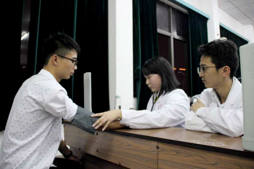 宣讲会散会后,金沙官网青年志愿者工作部成员自发为参会人员进行了验血型、量血压的现场义诊演练,并传授经验,教他们如何测量与操作,以便后期志愿者工作的顺利进行。